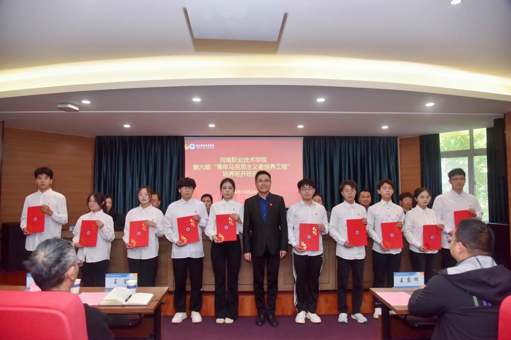 10月24日下午,河南职院举行第六期“青年马克思主义者培养工程”培养班开班仪式。校党委书记厉励出席开班仪式并讲话。校党委副书记、工会主席田华出席开班仪式。校党委委员、组织部部长杨华,党委宣传部、党委学生工作部、校日韩精品视频在线和马克思主义学院负责人;各二级学院党总支书记、副书记、团总支书记及第五期青马班优秀学员、第六期青马班新学员近140人参加开班仪式。