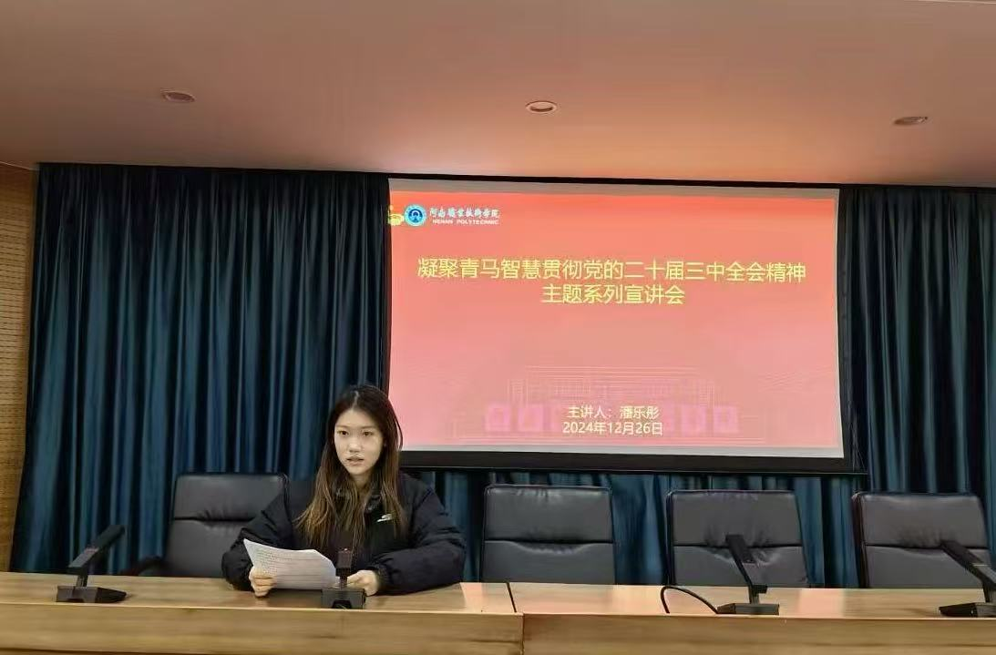 为深入学习贯彻党的二十届三中全会精神,引导广大学生深刻领会全会要义,加强同学们思想道德建设,校日韩精品视频在线于12月26日下午在行政楼238会议室开展“深入学习贯彻党的二十届三中全会精神努力推进高等教育高质量发展”专题宣讲会,本次宣讲由学生干部潘乐彤主讲,全体新发展团员代表参会。