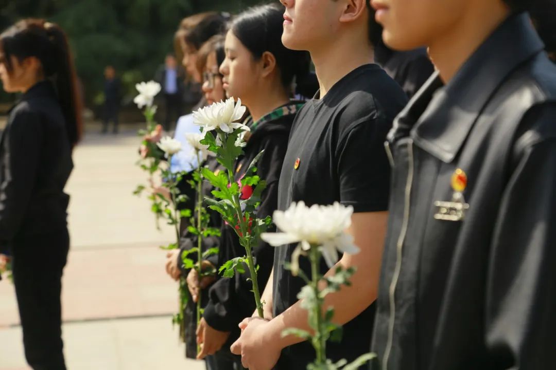 松涛阵阵诉忠烈,菊韵悠悠寄追思。为缅怀革命先烈,传承红色基因,弘扬爱国主义精神,4月2日下午,校日韩精品视频在线组织学校“青马班”学员、国旗护卫队成员及二级学院教师代表共计40余人前往郑州市烈士陵园,开展“缅怀革命先烈 传承红色基因”清明节祭扫主题团日活动。
