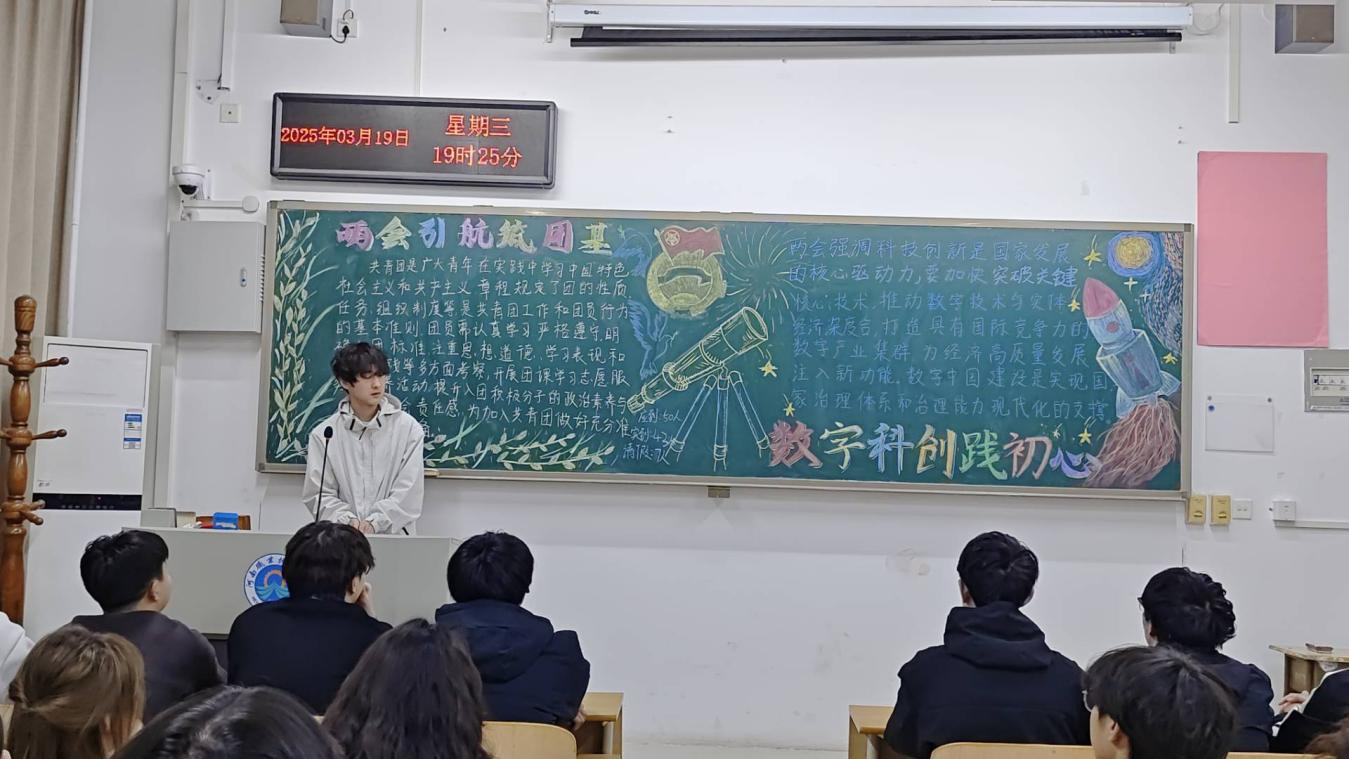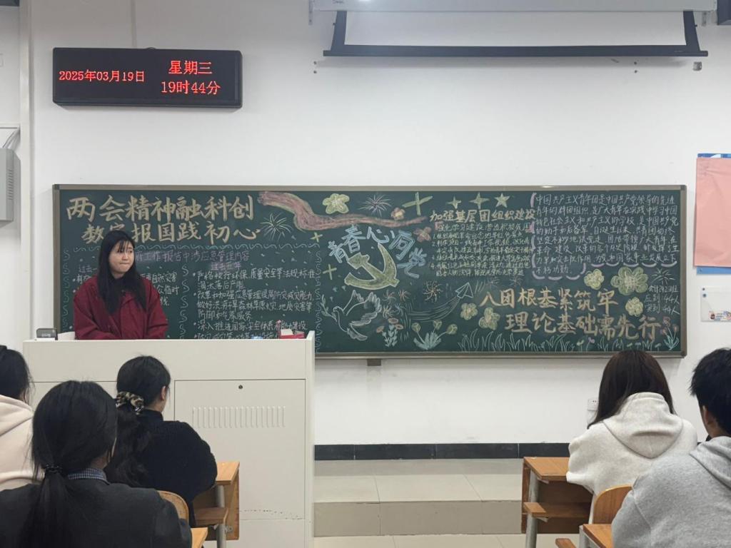 各班团支书围绕两会关于科技创新、数字经济、人才培养等方面的政策导向和战略部署,进行了深入浅出的讲解。通过生动案例和数据分析,团支书们帮助大家深刻理解两会精神的核心要义,增强科技创新的责任感和使命感。团课期间,各班团支书组织同学们结合当前形势探讨了新时代青年如何在日常学习生活中践行两会精神,为数字科技领域贡献力量。大家纷纷表示,将努力学习专业知识,积极参与科研实践,为数字中国建设贡献自己的青春力量。