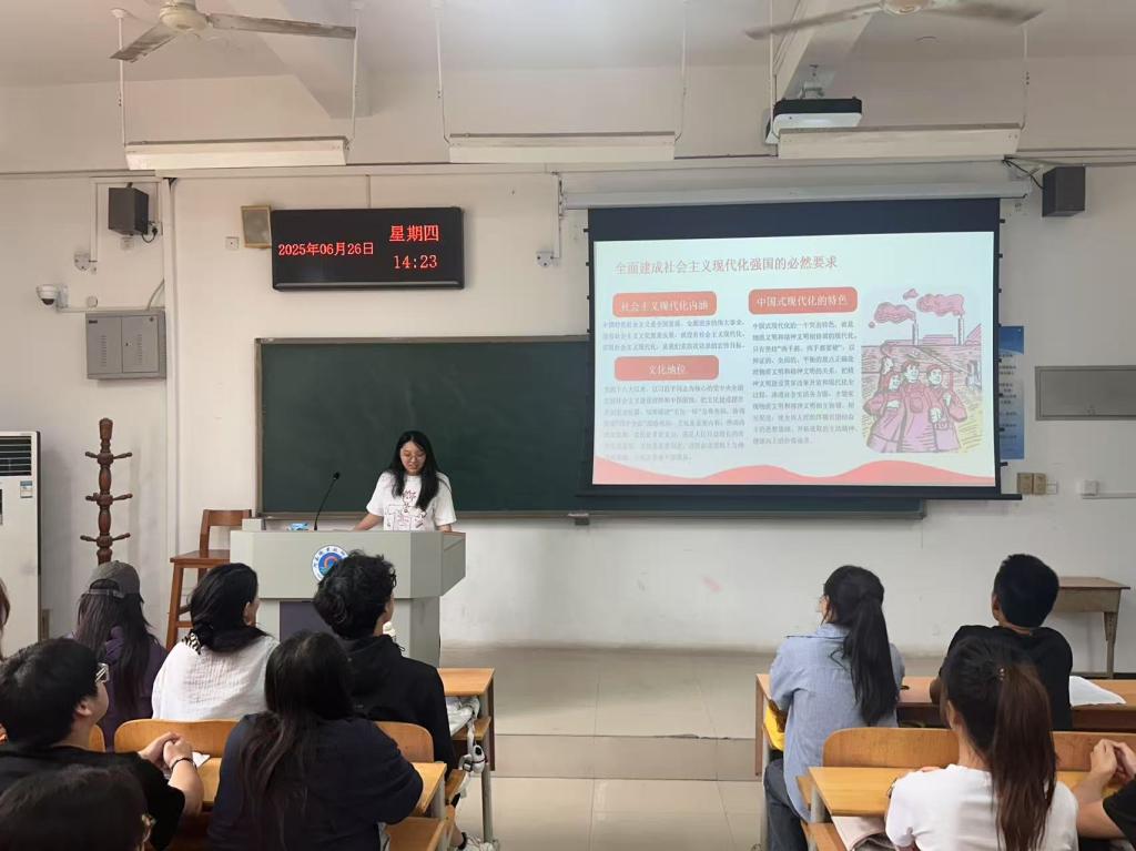 为深入学习贯彻习近平文化思想,引导青年学子深刻领悟中华文化内涵,增强文化自信与时代责任感,6月26日,学校党的创新理论“笃行”学生宣讲团成员李嘉欢面向青马班学员开展了专题宣讲活动,聚焦中华文化传承与发展核心议题,为学员们带来一场思想盛宴。