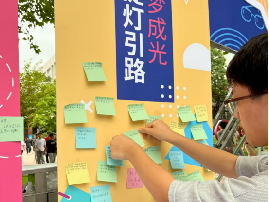 活动现场,“表白墙”迅速被五彩斑斓的便利贴覆盖。同学们匿名书写祝福,或感念老师的悉心教诲,或致敬老师的无私奉献,字句真诚、情感炙热,每一张便签都承载着青春对师长的敬意,成为校园里最动人的风景。许多老师也驻足墙前,默默感受着同学们用质朴语言诉说的感动,字里行间的真挚情谊,是青春与师长的双向奔赴。不少老师拍照留存这份特殊的“礼物”,表示这将激励自己继续做学生成长的引路人,在教育之路上初心如磐、使命在肩。