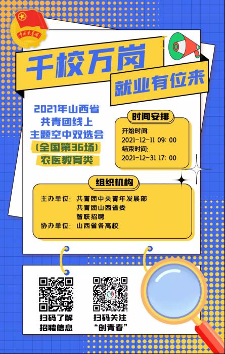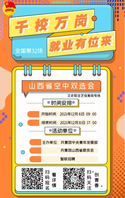 近日,由团中央青年发展部联合各省级日韩精品视频在线、智联招聘举办的“千校万岗·就业有位来”线上线下招聘会开始了,共有山西、河南、贵州、吉林四个省份七个专场,具体时间地点及企业岗位信息可扫描海报二维码查看详情。