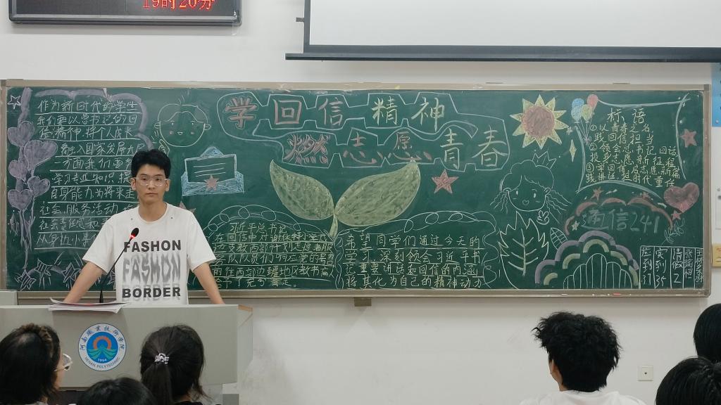 为深入学习宣传贯彻习近平总书记重要讲话和给谢依特小学戍边支教西部计划志愿者服务队队员回信精神,5月14日,电子与物联网学院组织各学生团支部开展主题团日活动,激励青年学子在时代浪潮中勇担使命、奉献青春。