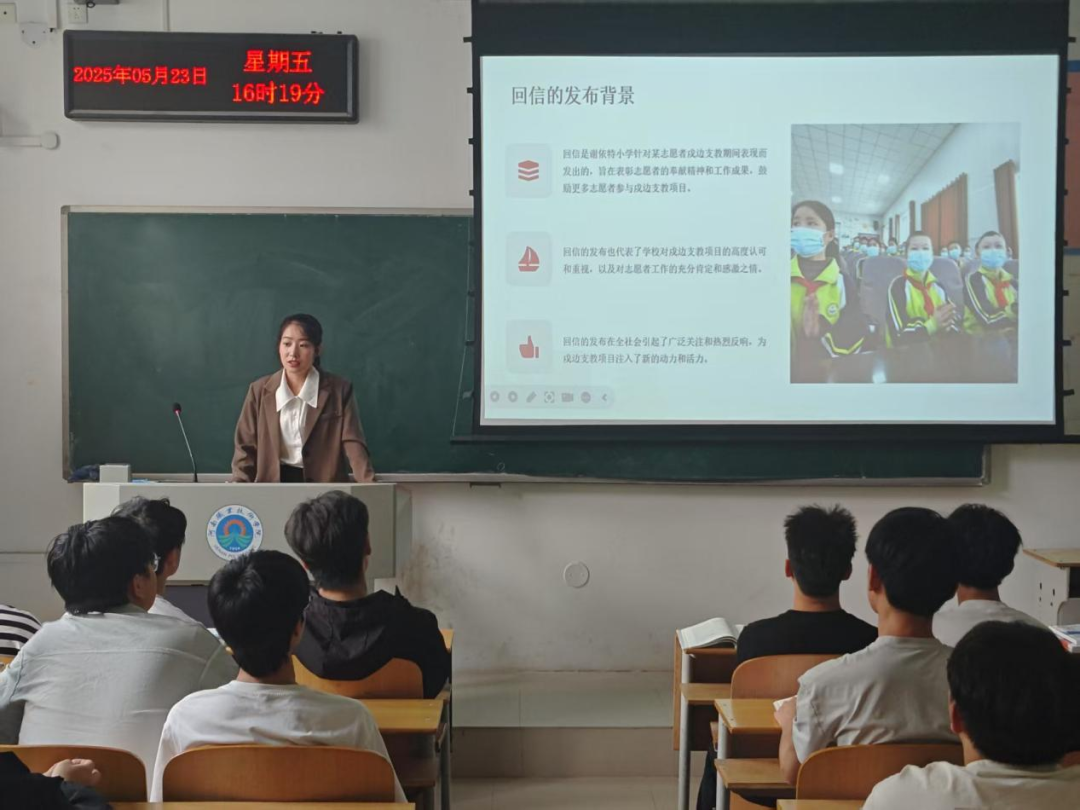 本次学习活动深化了同学们对新时代青年使命的认识,激发了大家扎根基层、服务国家的热情。未来,学院将持续引导青年学子以戍边支教志愿者为榜样,把个人理想融入国家发展,在各领域勇担重任,让青春之花绽放在祖国最需要的地方,以实际行动践行“请党放心,强国有我”的青春誓言。